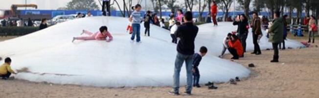 很多人都说蹦蹦云不安全,这是不对的。蹦蹦云是由蹦蹦云它是由外膜、内膜、送风管道、泄压管道、地面膜材锚固装置、膜内缓冲软垫、膜外缓冲沙坑、供风与压力控制集成房子等组成的。因此,它可抵御4级以上的大风,且可永久性的固定在地面之上,不用经常拆装。