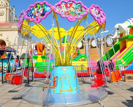 迷你飞椅是摇头飞椅的缩小版,是郑州朝阳游乐设备有限公司专为儿童设计生产的,外观方面融合了米奇等动漫形象,十分可爱。