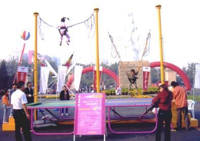 游乐设施孩子们都玩儿过,那就死蹦极跳床了。其实说白了就是跳床的增强版。以前的跳床都是自己蹦的,现在经过改装以后是有动力的,因此更加的刺激又意思。它利用一张跳床、一副弹力绳和升降立柱,让你在6米的高空中进行跳跃并做出各种花样翻转动作,该是多么惬意。它能让你在空中增加自身的协调性,让关节和肌肉受到特有的拉力,既能健身又有很强的趣味性,不分男女老少,无需高超技巧,谁都能勇敢地腾空一试。